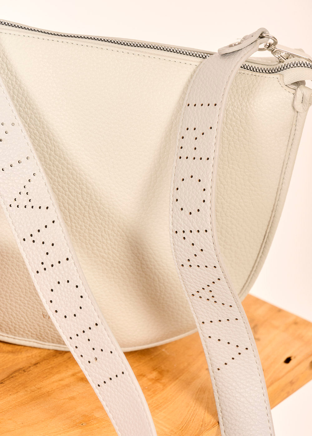 Die helle VIAMORI Tasche ist zeitlos, elegant und lässt sich mühelos kombinieren. Sie begleitet dich stilvoll durch den Tag und bietet gleichzeitig genügend Platz für alles, was dir wichtig ist.