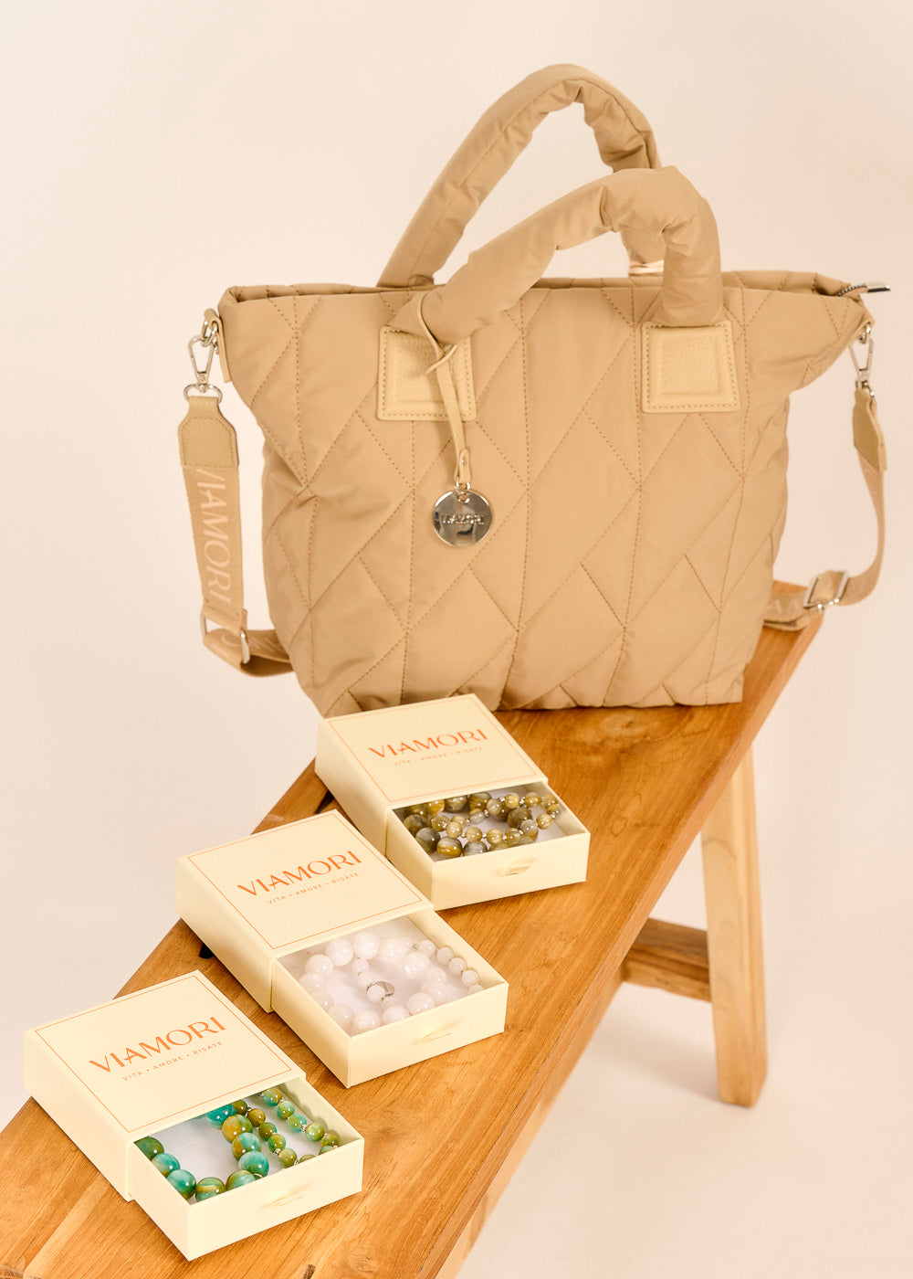 Schau auf dein Handgelenk, denke an die Weinberge der Toskana und das Leben fühlt sich plötzlich ganz leicht an. Genau dieses Gefühl trägt das VIAMORI Perlenarmband Set in Verde in sich. Und das Schönste: Die Armbänder lassen sich zusammen oder einzeln tragen und sogar wunderbar mit anderen Farben kombinieren.