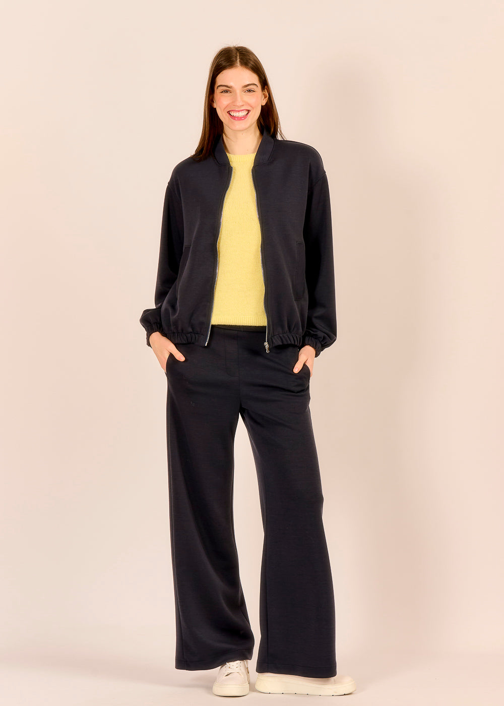 Der dunkelblaue Bomberino mit Gummizug an Saum und Ärmeln wirkt sportiv und zugleich stilvoll und souverän – genau diese Mischung macht den italienischen Stil so unverwechselbar. Besonders mühelos lässt er sich mit der passenden Pantalone kombinieren.