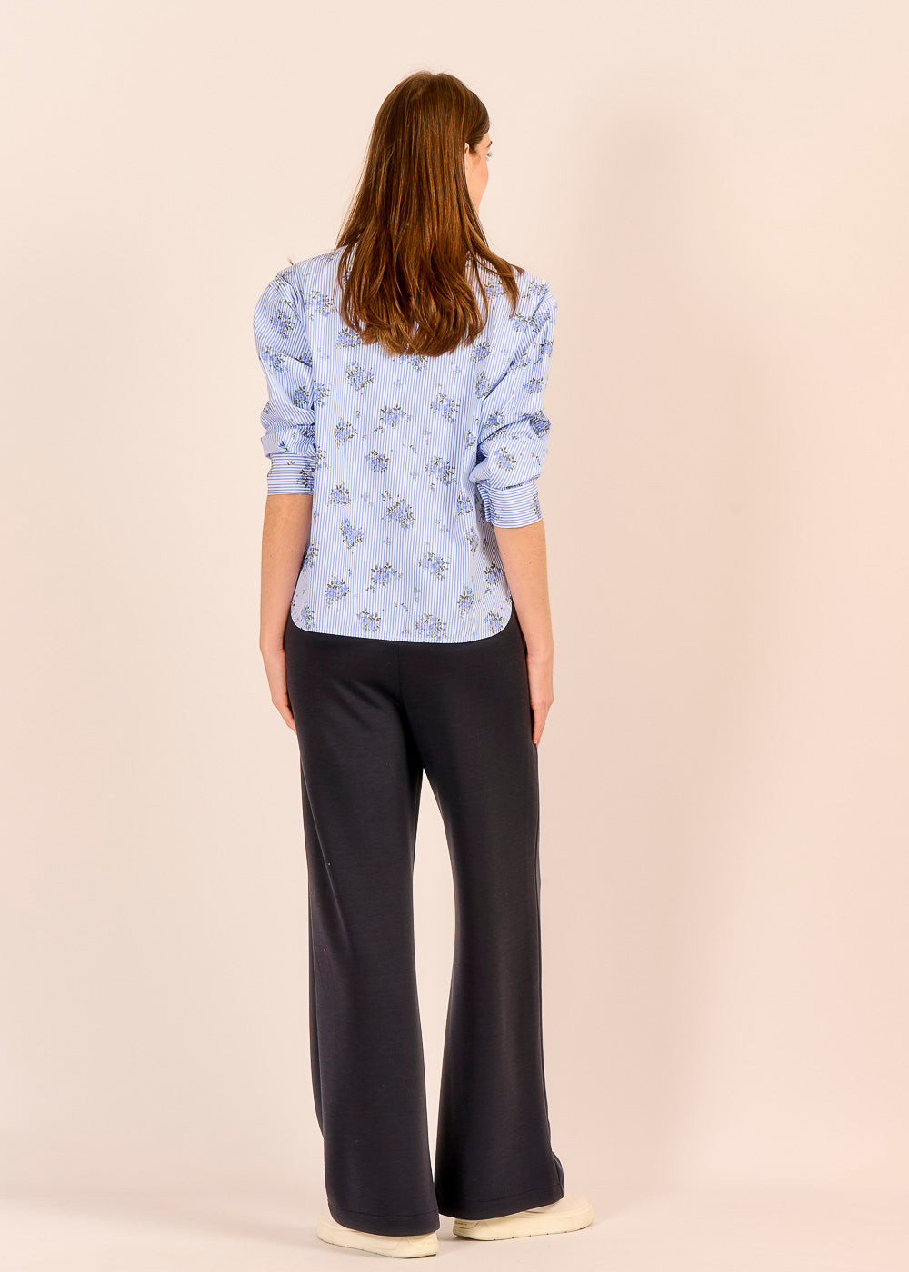 Die dunkelblaue Pantalone strahlt selbstverständliche Eleganz aus. Der fließende Schnitt schenkt dir Bewegungsfreiheit und formt gleichzeitig eine feminine Silhouette. Ob elegant mit einer Bluse oder lässig mit einem Bomberino kombiniert – diese Pantalone ist perfekt für den Alltag.