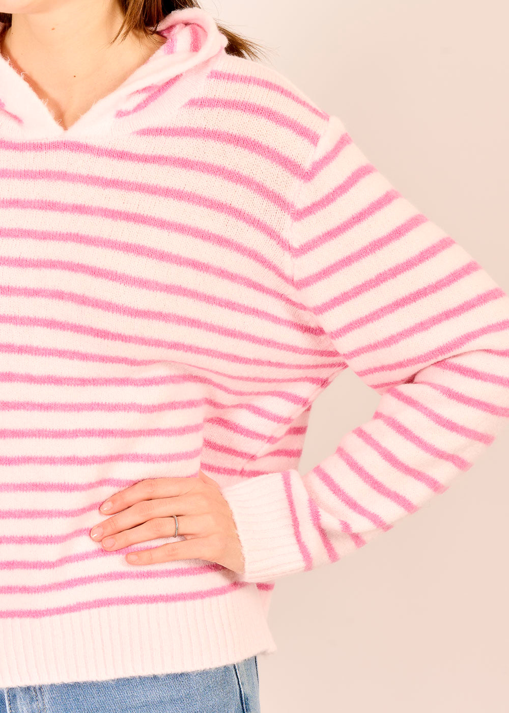 Der gestreifte Hoody bringt Farbe in deinen Wohlfühl-Look. Zeitloses Ringelmuster trifft auf gemütliches Tragegefühl. Dieses Design macht einfach Lust auf entspannte Frühlingstage.