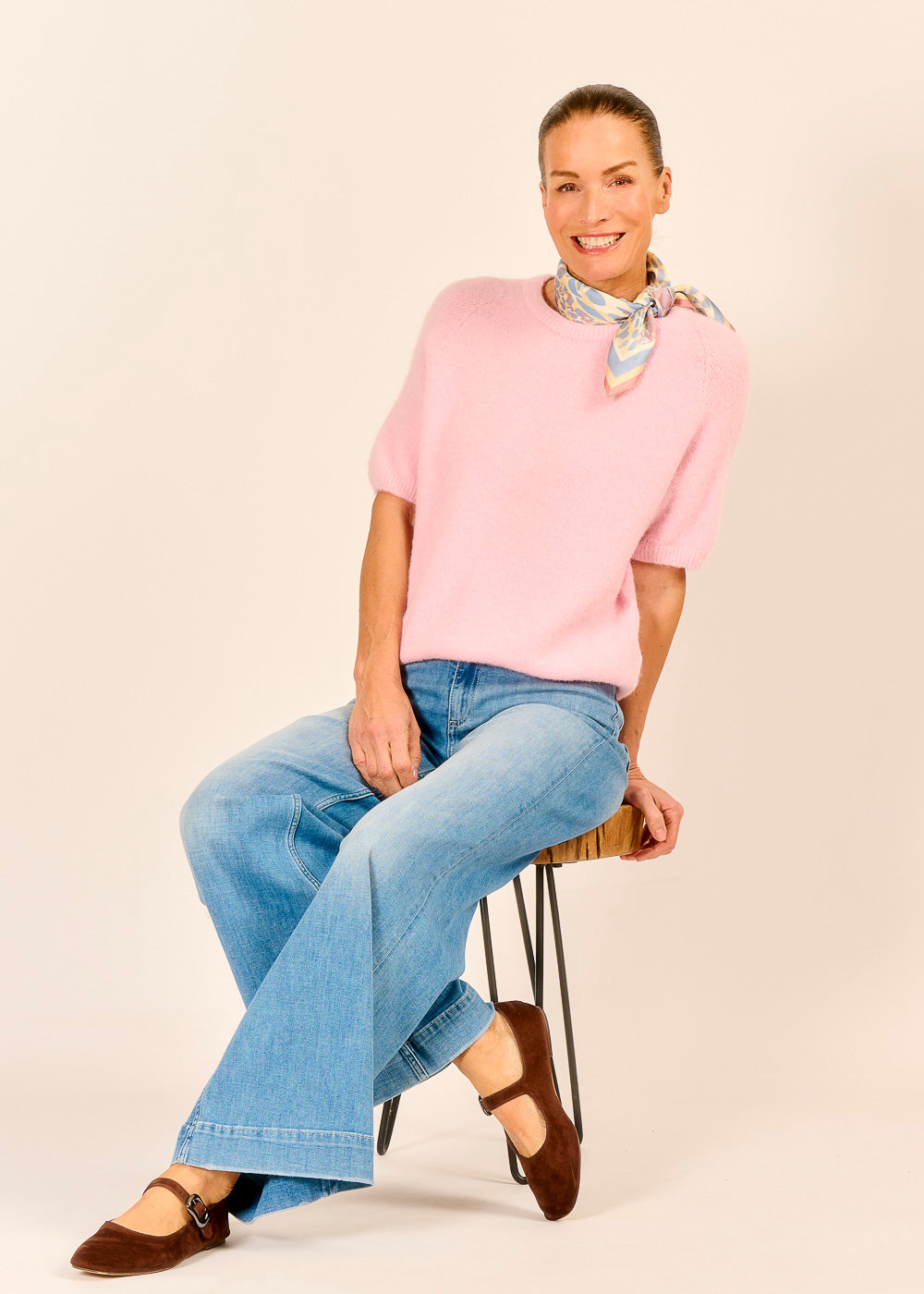 Der rosafarbene Strickpullover mit kuscheliger Baby Alpakawolle schmeichelt der Haut und schenkt ein federleichtes Tragegefühl. Der frische, feminine Pastellton bringt Leichtigkeit in deinen Look und lässt dich strahlen..